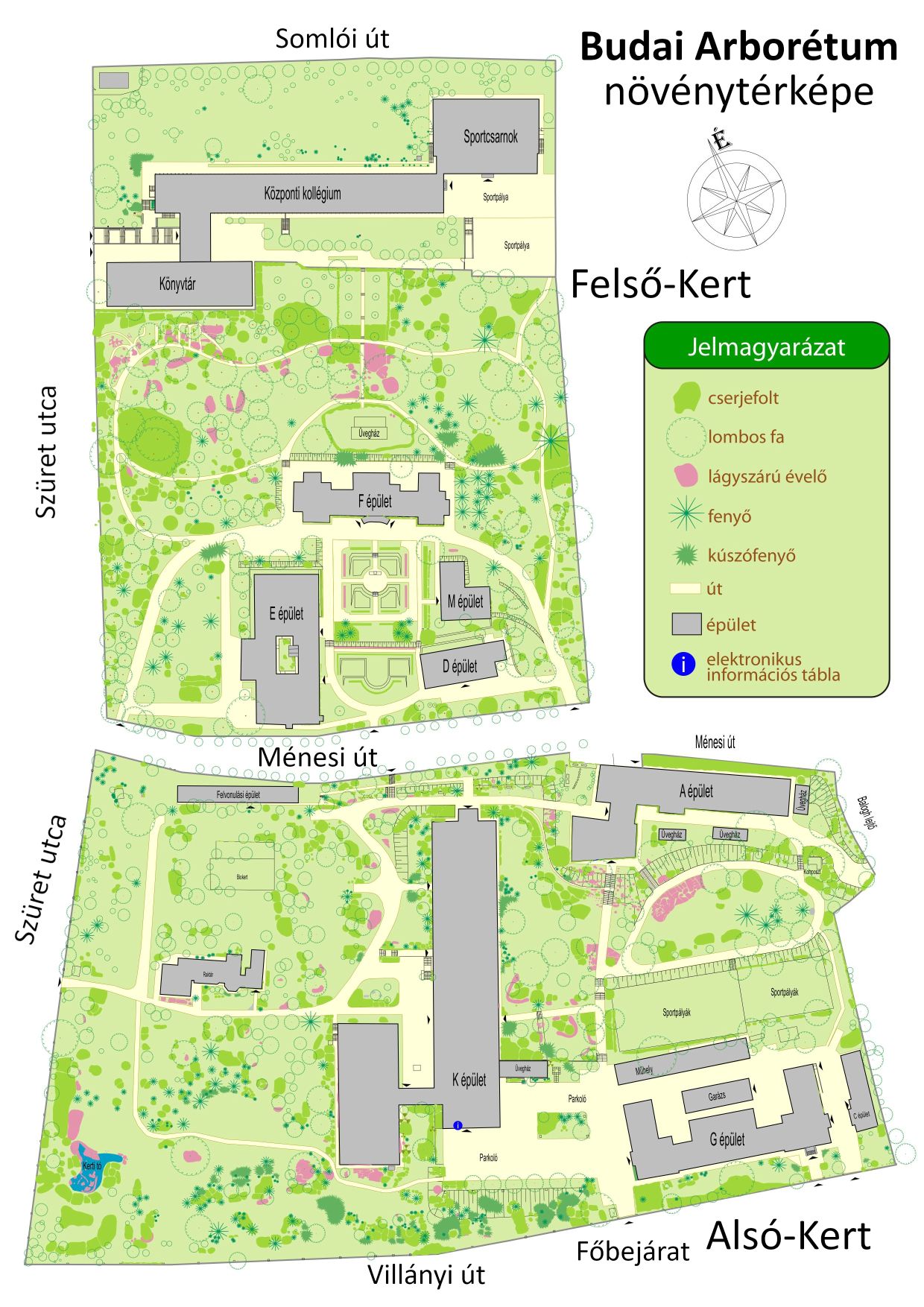 A Budai Arborétum a Gellért-hegy déli oldalán terül el, a Villányi út - Szüret utca - Somlói út között. Az Arborétum telepítését először a Felső Kertben kezdték meg 1893-94 telén. Tervezője és első vezetője a német származású kertész-dendrológus, Räde Károly volt. 1000 féle fa és cserje, és 90 évelő faj nyert elhelyezést az akkoriban alakult Magyar Királyi Kertészeti Tanintézetet körülvevő három hektárnyi területen. Az itt található növények egy része tehát - például az "F" épület fölötti néhány tölgy, dió, platán, páfrányfenyő - elmúlt 110 esztendős. A kialakítás tájképi jellegű volt, rendszertani hovatartozásuk szerint csoportosított növényekkel. Ez a csoportosítás - a kert bemutató jellegének megfelelően - az oktatást szolgálta.