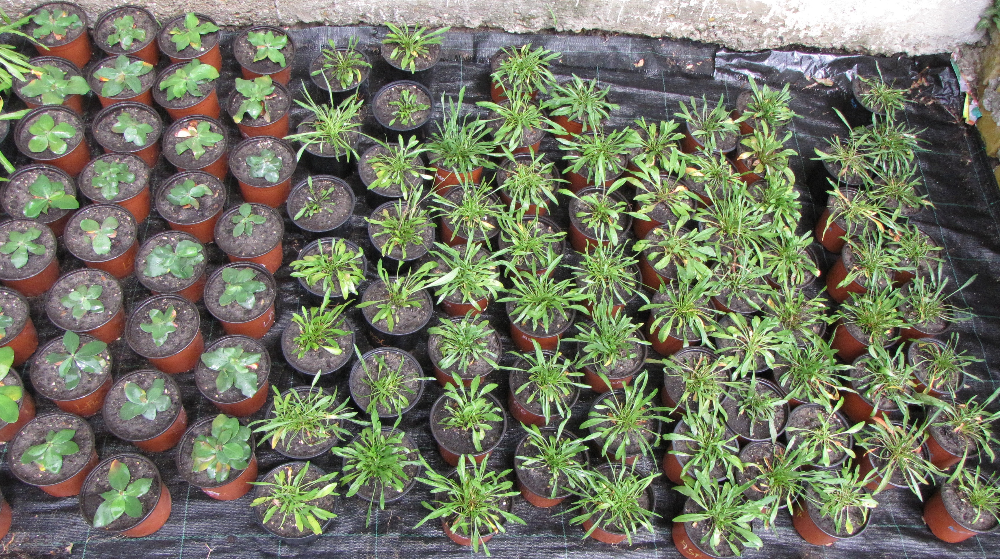 Elindítottuk a vizsgált fajok termesztésbe vonását. Első lépésben a főbb közegalkotók hatását teszteltük. Mosott folyami homok, agyag (Alginit) és balti tőzeg keverékeibe ültettük a növényeket, amikhez 2,5 g/L mennyiségben káliumhangsúlyos, 3-4 hónapos hatástartamú Osmocote műtrágyát kevertünk. Az eredmények alapján finomítottuk a keverékek összetételét. Mindhárom faj esetében a tőzeget tartalmazó közegekben mértük a legnagyobb növényméretet, azonban a levelek klorofilltartalma alacsonyabb volt a többi vizsgált közegben nevelt növényeknél kialakult értékhez viszonyítva. Az agyagtartalom a növények kompaktabb növekedését, de összességében egészségesebb, szebb megjelenését segítette elő. Az Inula britannica nevelése során homokot is tartalmazó termesztőközeg alkalmazása javasolt.